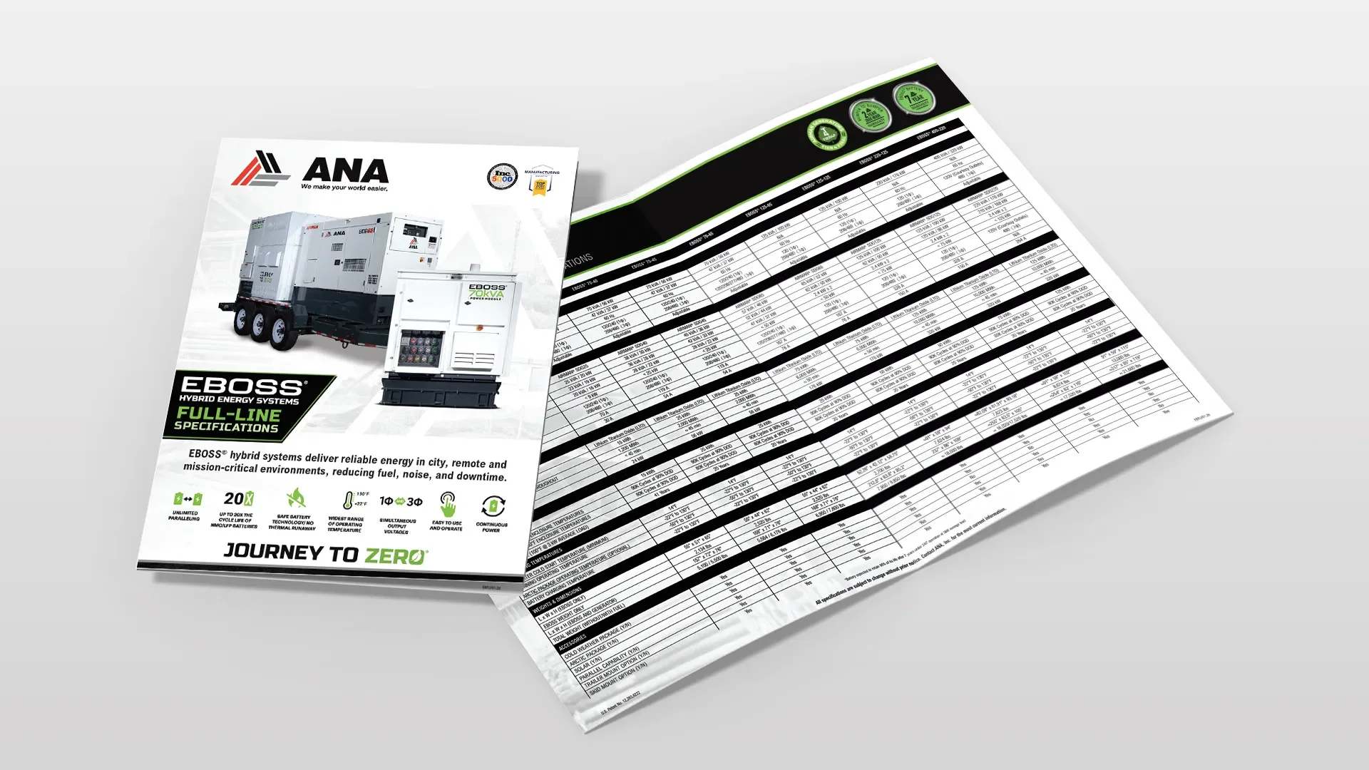 With the EBOSS product line constantly expanding, it was important ANA provided a quick reference for all current product specs. I was tasked with designing a simple, but effective single fold brochure that featured all this information. I met with multiple internal sales teams as well as independent sales reps and hosted feedback sessions before delivering the final product in time for the 2026 Trade Show season.